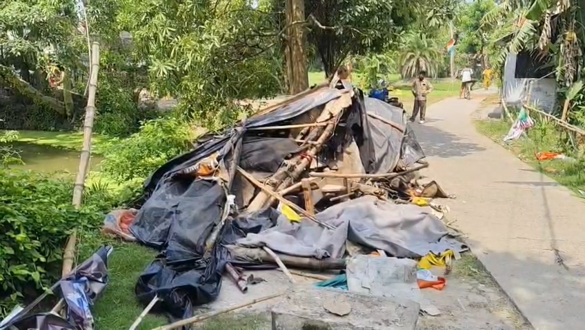 “গত কাল রাতে স্থানীয় বিজেপি নেতা মধু সুদন সাহুর নেতৃত্বে বিজেপির দুষ্কৃতীরা কেন্দ্রীয় বাহিনী কে সঙ্গে নিয়ে তৃণমূল কর্মীদের বাড়ি, টোটো ভাংচুর করে,এমন কি বাড়ীর আলমারির লকার ভেঙে গহনা লুট করে।রাস্তায় লাগানো তৃণমূল কংগ্রেসের পতাকা,বন্যার ফেস্টুন, ছিঁড়ে দেয়।ব্যাপক মারধর করে বলে অভিযোগ”।