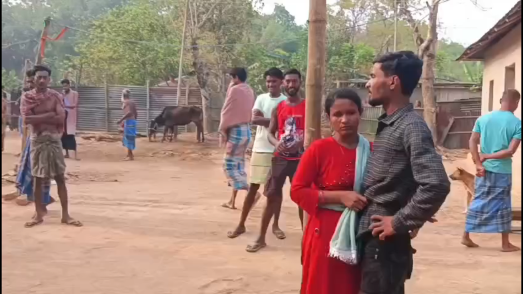পরবর্তী সময়ে গ্রামের উত্তেজিত মানুষ দুই সন্তানের জননী এবং অবৈধ প্রেমিককে ধরে গণধোলাই দিয়ে বাড়ির উঠোনে দড়ি দিয়ে বেঁধে রেখে খবর দেয় বিশালগড় থানায়। খবর পেয়ে বিশালগড় থানার পুলিশ এসে দুই সন্তানের জননী এবং অবৈধ প্রেমিককে আটক করে থানায় নিয়ে যায়। এরপর গ্রামের মহিলারা উলুধ্বনি দিয়ে অবৈধ প্রেমিক এবং দুই সন্তানের জননীকে পুলিশের গাড়িতে তুলে দেয়।