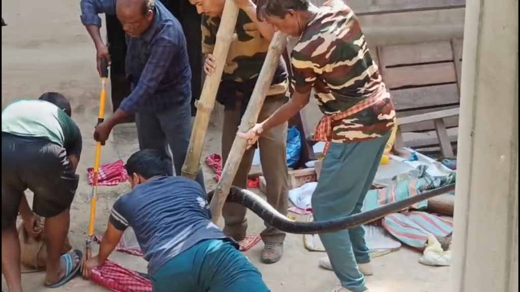 কিন্ত, রাতে এত বড় কিং কোবরা সাপটিকে ধরা বন দফতরের কর্মীদের দ্বারা সম্ভব হয়নি। আজ সকাল ১১ টায় বাড়ির মালিক সঞ্জয় চক্রবর্তী সেই কিং কোবরা সাপটিকে আবারো দেখতে পেয়ে আতঙ্কিত হয়ে খবর দেয় বন দফতরকে। অবশেষে বন দফতরের কর্মীরা এই কিং কোবরা সাপটিকে ধরে ইডেন অফ তৃষ্ণা অভয়ারণ্যে নিয়ে ছেড়ে দেয়। তৃষ্ণা অভয়ারণ্যের অতিরিক্ত বন্যপ্রাণী সংরক্ষক সুকান্ত সরকার জানায় যে, গত এক থেকে দুই বছরে এই রকম প্রায় ৬ থেকে ৭ টি সাপ তৃষ্ণা অভয়ারণ্যের জঙ্গলে ছাড়া হয়। যারা বন জঙ্গেলে যান তাদেরকে সাবধানে চলাফেরা করার নির্দেশ দিলেন তিনি।