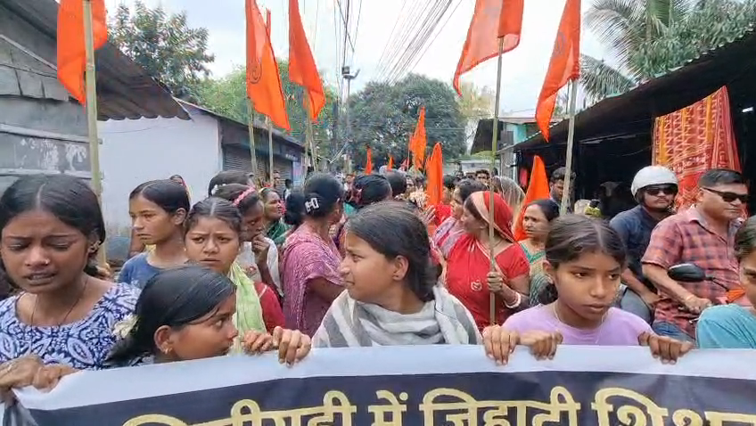 গত সোমবার ১৫ বছর বয়সী এক নাবালিকা কিশোরীর আ*ত্মহ*ত্যার ঘটনায় আমির আলীর দৃষ্টান্তমূলক শাস্তির দাবিতে উত্তাল হয়ে ওঠে এলাকা। মৃ*তার পরিবারের সদস্যদের পাশাপাশি প্রতিবেশীরাও ক্ষোভে ফেটে পড়েন এবং প্রতিবাদে রাস্তায় নামেন। মঙ্গলবার নাবালিকার বাড়ি থেকে শুরু হয়ে মহাকুমা শাসকের (এসডিও) কার্যালয় পর্যন্ত একটি বিশাল মিছিল সংগঠিত হয়। এই মিছিলে প্রায় দুই শতাধিক স্থানীয় বাসিন্দা অংশগ্রহণ করেন। পাশাপাশি বিশ্ব হিন্দু পরিষদ ও বাজরং দলের সদস্যরাও এই বিক্ষোভে যোগ দেন এবং অভিযুক্তের দ্রুত গ্রেফতারের জোরালো দাবি তোলেন।