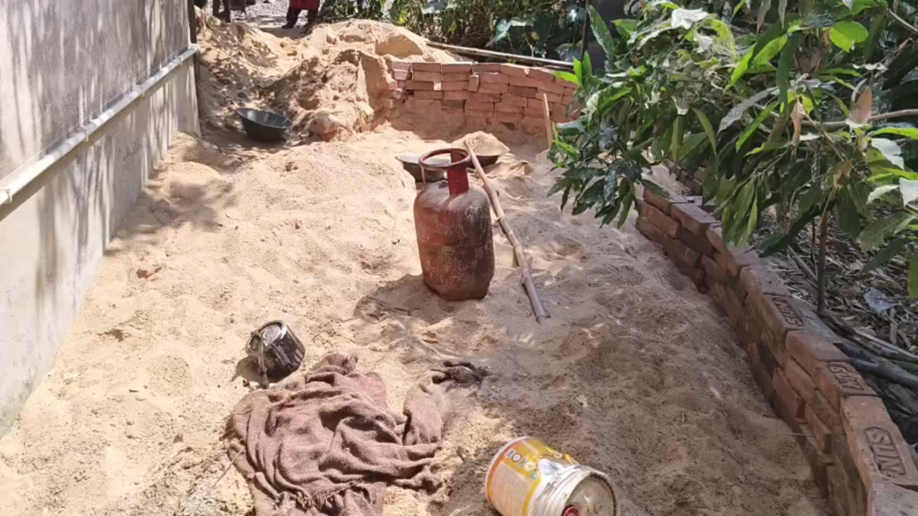 বাড়ির লোকজন জানায় পাইপ লিক থেকে গ্যাস বেরোচ্ছিল বলে জানা গেছে । চট এর থলি জলে ভিজিয়ে কোনোক্রমে আগুন আয়তে আনে ।
