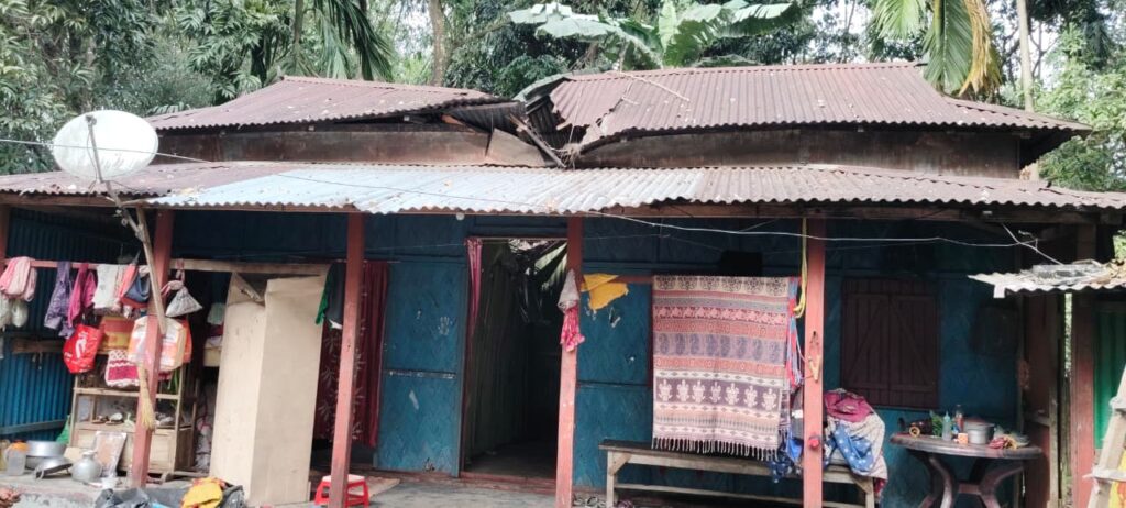 ঝড়ের দাপটে গাছ উপরে পরলো থাকার ঘরে, অল্পের জন্য প্রানে বাচলেন কুমারগ্রাম ব্লকের ভল্কা বারবিশা ১ গ্রাম পঞ্চায়েতের লস্করপাড়ার বাসিন্দা চিত্তরঞ্জন দাসের পরিবার। তবে থাকার ঘরের কাঠ এবং টিন ভেঙে আরাআরি ভাবে দুটি ভাগে বিভক্ত হয়ে গিয়েছে ঘরটি। বুধবার রাত অনুমানিক দশটা সে সময় ঘরের ভেতর ছিলেন চিত্তরঞ্জনের স্ত্রী, ছোট ছেলে এবং ছেলের বঊ। কোলের বাচ্চাকে খাবার খাইয়ে দিচ্ছিলেন ছোট ছেলের বঊ। সেসময় হঠাৎ ঘরের পাশে থাকা একটি বড় আকৃতির চাউ গাছ উপরে পরে ঘরের উপর।