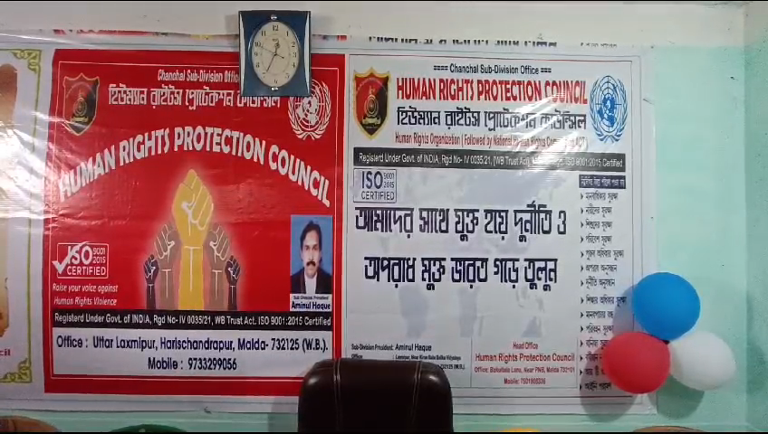চাঁচল মহকুমার হিউম্যান রাইটস প্রোটেকশন কাউন্সিলের সভাপতি হিসেবে দায়িত্ব দেওয়া হয়েছে হরিশ্চন্দ্রপুরের বাসিন্দা তথা সমাজ সেবক আমিনুল হক কে। গত ২৩ মার্চ মালদহ বার অ্যাসোসিয়েশনের আইনজীবীরা আমিনুলের হাতে হিউম্যান রাইটস প্রোটেকশন কাউন্সিলের অ্যাপয়েন্টমেন্ট লেটার তুলে দেন। সভাপতি আমিনুল বলেন, মানবাধিকার সুরক্ষা, নারীদের সুরক্ষা, শিশুদের সুরক্ষা, পুরুষ অধিকার সুরক্ষা,অপরাধ অনুসন্ধান, দুর্নীতি অনুসন্ধান ও মানব পাচার বন্ধ সহ বিভিন্ন বিষয়ে কাজ করে থাকেন আমাদের এই সংস্থা। এর যে কেউ সদস্য হতে পারেন।