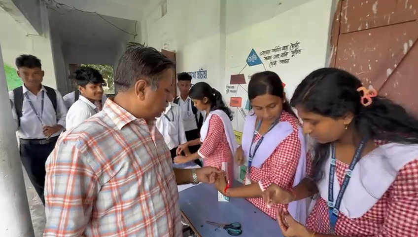 আজ এক অভিনব ঘটনার সাক্ষী রইল বানারহাট হাই স্কুল। বিদ্যালয়ের একাদশ ও দ্বাদশ শ্রেণির ছাত্র-ছাত্রীদের প্রত্যক্ষ অংশগ্রহণে আয়োজিত হলো এক প্রাথমিক স্বাস্থ্য পরীক্ষা শিবির। পঞ্চম শ্রেণি থেকে দ্বাদশ শ্রেণি পর্যন্ত সকল ছাত্র-ছাত্রীর রক্তচাপ ওজন উচ্চতা বডি মাস ইনডেক্স (BMI), রক্তের গ্রুপ। রক্তে শর্করার পরিমাণ অক্সিজেনের মাত্রা ইত্যাদি পরিমাপ করল ছাত্র-ছাত্রীরাই নিজের হাতে। শুধু তাই নয় প্রতিটি তথ্য যথাযথভাবে নথিভুক্তও করে তারা। এ ধরনের উদ্যোগ বিদ্যালয় শিক্ষাজীবনে এক অভূতপূর্ব দৃষ্টান্ত। বিদ্যালয়ের জীববিদ্যার শিক্ষক বলাইচন্দ্র দাস এবং হেলথ কেয়ার প্রশিক্ষক অনুশ্রী রক্ষিত ছাত্র-ছাত্রীদের দক্ষ করে তোলেন এই কর্মসূচির জন্য। শিবিরে চিকিৎসা বিজ্ঞানের নানা যন্ত্রপাতির ব্যবহার সম্পর্কে স্মার্ট ক্লাসে বিশেষ সচেতনতামূলক আলোচনা করা হয়।