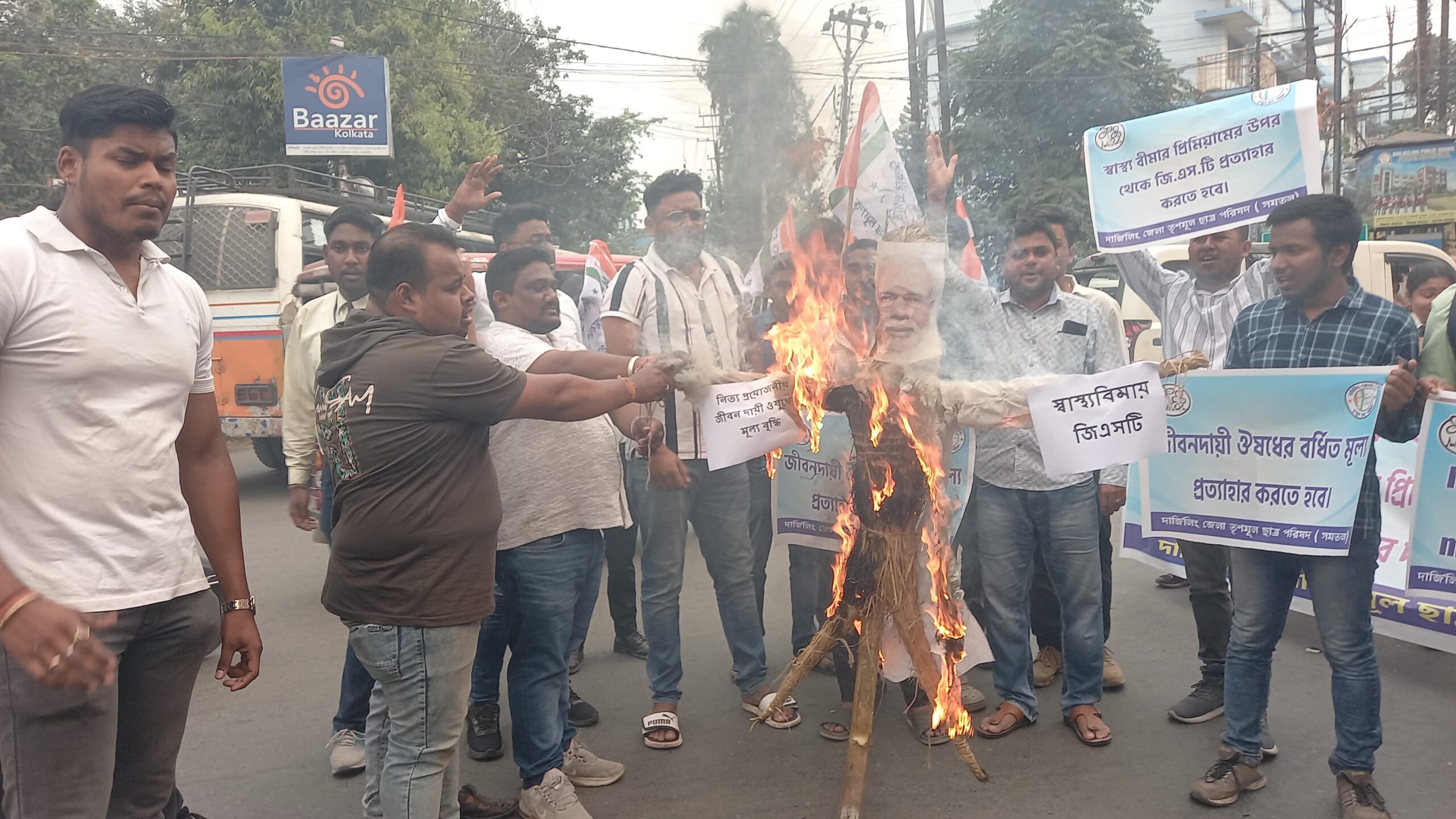 এদিন শিলিগুড়ির হাসপাতাল মোড়ে জমায়েত হয়ে এক মিছিলের মধ্য দিয়ে শিলিগুড়ি সফদর হাসমি চকে এসে পৌঁছায় দার্জিলিং জেলা তৃণমূল ছাত্র পরিষদের সদস্যরা। পরে সফদর হাসমি চকে দেশের প্রধানমন্ত্রী নরেন্দ্র মোদির কুশপুতুল দাহ করে তারা।