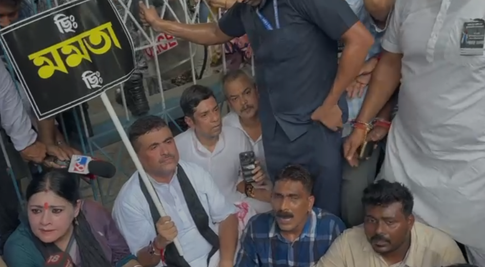 নবান্ন অভিযান ঘিরে তুলকালাম। শুভেন্দু অধিকারী পথে নামতেই বাধা পুলিশের। তিলোত্তমার মা-বাবাকে নিয়ে ডোরিনা ক্রসিংয়ে পৌঁছন শুভেন্দু অধিকারী। তবে প্রতি পদেই বাধা পান। একদিকে, শুভেন্দু অধিকারী সহ বিজেপি নেতৃত্বকে যখন আটকাতে মরিয়া পুলিশ, সেই সময় পুলিশকে এড়াতে অন্য রুটে এগোতে থাকেন রাজ্যের বিরোধী দলনেতা। শেষে বাধা পেয়ে পার্ক স্ট্রিটেই অবস্থান বিক্ষোভে বসে পড়েন। নবান্ন অভিযান আটকাতে ত্রি-স্তরীয় ব্যারিকেডের ব্যবস্থা করা হয়েছিল। আন্দোলনকারীরা সেই ব্যারিকেড টপকে এগিয়ে যাওয়ার ক্রমাগত চেষ্টা করেন।