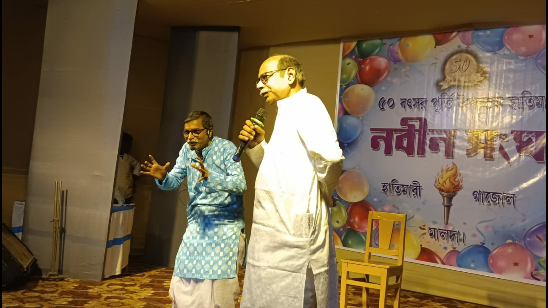 মালদার গাজোলের হাতিমারী নবীন সংঘের উদ্যোগে তিন দিন ব্যাপী সুবর্ণ জয়ন্তী বর্ষ উদযাপন অনুষ্ঠান শেষ হল।রবিবার রাত্রিতে জাঁকজমকপূর্ণ ভাবে বিভিন্ন সাংস্কৃতিক অনুষ্ঠান হয়। ও তাদের নবীন সংঘের মন মাতানো কার দোষ একটি নাটক পরিবেশন করেন।উপস্থিত ছিলেন গাজোল ২ প্রধান অর্মিলা রাজবংশী,স্থানীয় গ্রাম পঞ্চায়েত সদস্য গোবর্ধন মন্ডল,নবীন সংঘের সভাপতি সঞ্জীব তালুকদার,সহ-সভাপতি তরুণ কুমার ঘোষ,নারায়ণ মন্ডল,স্বাধীন দাস,অখিল নন্দী সহ অন্যান্যরা।