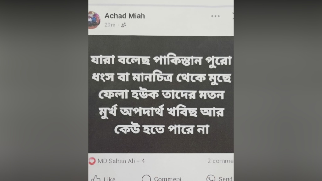 পাকিস্তানকে সমর্থন করে সামাজিক মাধ্যমে ভারত বিরোধী পোস্ট করার অভিযোগে