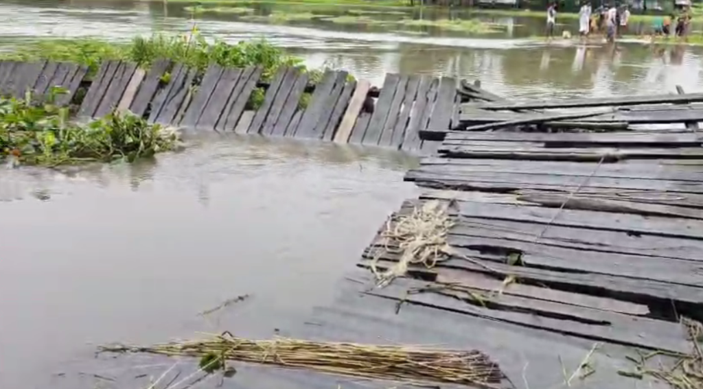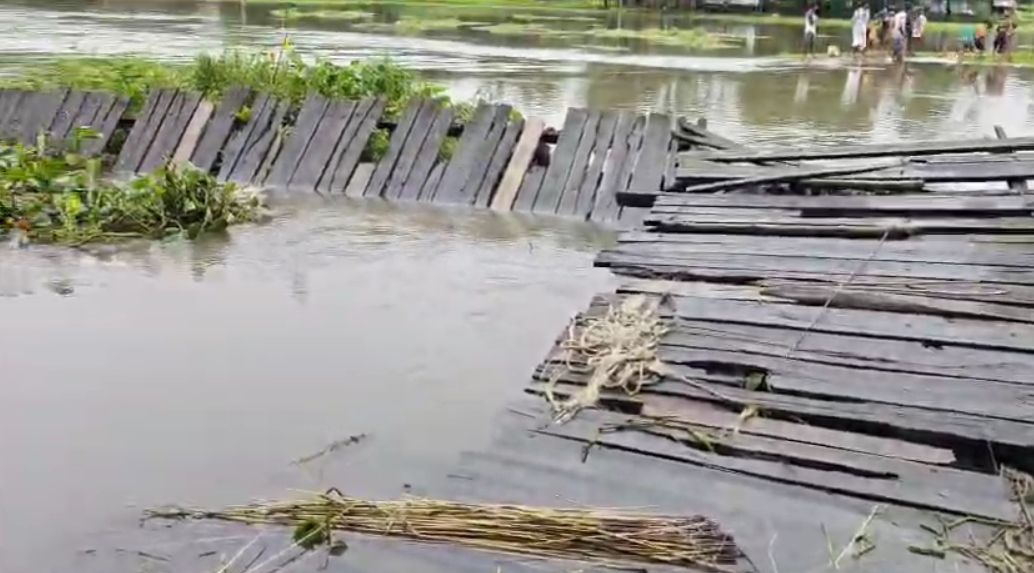 মঙ্গলবার সন্ধ্যা থেকে ভারী বৃষ্টি শুরু হয় জলপাইগুড়ি জেলা জুড়ে। রাতভর ভারী বৃষ্টির জেরে ধূপগুড়ি মহকুমার বারঘোরিয়া গ্রাম পঞ্চায়েতের মান্তা পাড়া এলাকায় গান্দারা নদীর উপর থাকা কাঠের সেতুটি ভেঙে যায়। যার ফলে যোগাযোগ বিচ্ছিন্ন নদীর দুই পাড়ের বাসিন্দাদের। সমস্যায় পড়েছে হাজার হাজার গ্রামবাসী। দীর্ঘদিন থেকে এই কাঠের সেতুটির বেহাল দশা। ভারী বৃষ্টিতে গান্দারা নদীর জল বেড়ে যাওয়ায় স্রোতে ভেঙে যায় এই নড়বড়ে কাঠের সেতুটি। গুরুত্বপূর্ণ সেতুটি ভেঙে যাওয়ায় এলাকার ছাত্র-ছাত্রীদের থেকে শুরু করে গ্রামবাসীদের নিত্য প্রয়োজনে অনেকটা ঘুর পথে যেতে হচ্ছে।
