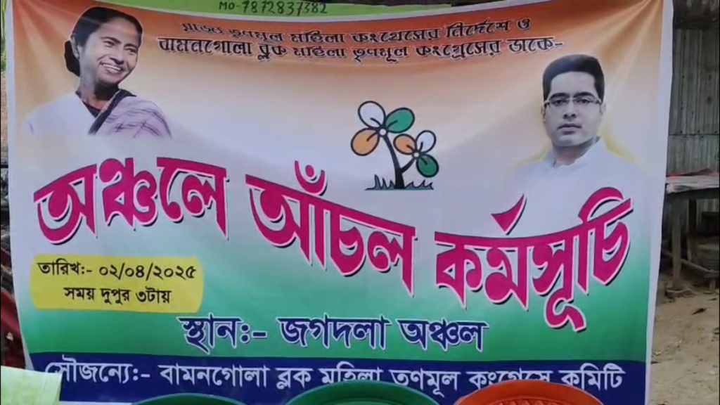 অঞ্চলের আঁচল কর্মসূচি।এদিন তথা বুধবার বিকেলে বামনগোলা ব্লকের জগদলা অঞ্চলের সিমলা বুথে তৃণমূল কংগ্রেসের রাজ্যে মহিলা নেত্রীর নির্দেশে তৃণমূলের জেলা মহিলা নেত্রীর সহযোগিতায় বামনগোলা ব্লকের সিমলা বুথে অনুষ্ঠিত হলো
