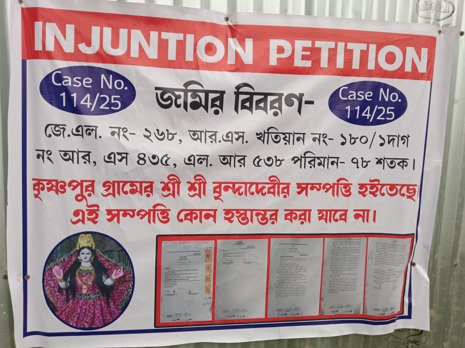 মালদার গাজোল ব্লকের রানীগঞ্জ ২ নম্বর অঞ্চলের কৃষ্ণপুর গ্রামে বৃন্দা দেবীর দেবোত্তর সম্পত্তি নিয়ে শুরু হয়েছে তীব্র বিতর্ক। অভিযোগ, এলাকারই এক জমি মাফিয়া প্রোমোটার দেবোত্তর সম্পত্তি নিজের নামে রেকর্ড করে নিয়েছেন এবং সেই জমি প্লটিং করে বিক্রি করার চেষ্টা করছেন। স্থানীয় বাসিন্দা দীপক প্রামাণিক জানান, শ্রী শ্রী বৃন্দা দেবীর নামে রেকর্ডভুক্ত ওই সম্পত্তি ৭৬ শতক জমি তার পূর্ব পুরুষদের দ্বারা দেবতার নামে দানকৃত সম্পত্তি। এই জমি রেকর্ড কেটে এক প্রোমোটার মাফিয়া নিজের নামে করে নিয়েছে এবং জোর করে দখল করছে ।