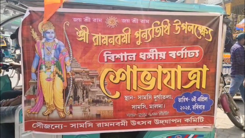 রবিবার রাম নবমী উপলক্ষে সামসীতে হতে চলেছে বিশাল বর্ণাশ্য শোভাযাত্রা। সেই শোভাযাত্রার এখন প্রস্তুতি চলছে জোরকদমে। এই প্রসঙ্গে সামসী রাম নবমী উৎসব উদযাপন কমিটির সম্পাদক অভিষেক সিংহানিয়া জানালেন, ২০১৭ সাল থেকে সামসীতে রামনবমী উপলক্ষে বিশাল ধর্মীয় শোভাযাত্রা হয়ে আসছে। যার কোন ব্যতিক্রম হবেনা এবারও।