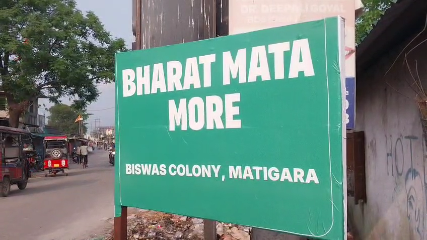 রাতের অন্ধকারে নাম বদলে দেওয়া হলো রাস্তার মোড়ের। ঘটনায় চাঞ্চল্য ছড়াল শিলিগুড়ির মাটিগাড়া এলাকায়। সদ্য পরিবর্তিত ‘ভারত মাতা মোড়’-এর নাম অজ্ঞাতপরিচয় ব্যক্তিদের হাতে বদলে হয়ে গেল ‘বিশ্বাস কলোনি মোড়’। কে বা কারা এই নাম পরিবর্তনের কাজ করেছে, তা এখনও জানা যায়নি। ঘটনার জেরে রাজনৈতিক ও সামাজিক মহলে তৈরি হয়েছে বিতর্কের ঝড়। সোমবার বঙ্গীয় হিন্দু মহামঞ্চের পক্ষ থেকে পাকিস্তান মোড় নামক একটি রাস্তার মোড়ের নাম পরিবর্তন করে রাখা হয় ‘ভারত মাতা মোড়’। তবে মাটিগাড়া বিডিওর দাবি পাকিস্থান মোড় বলে কোন জায়গায় নাম ছিল না। সরকারি নথি অনুযায়ী ঐ জায়গার নাম ‘বিশ্বাস কলোনি’ নামে পরিচিত ছিল।