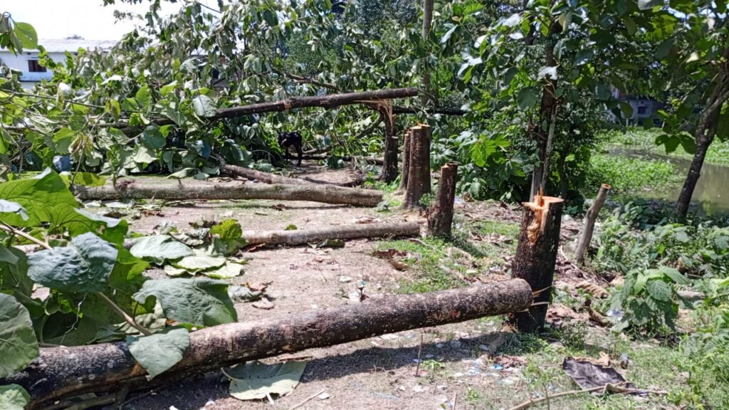 রাতের অন্ধকারে স্কুলের ৪৭ টি সেগুন গাছ কেটে ফেলল দুস্কৃতীরা।