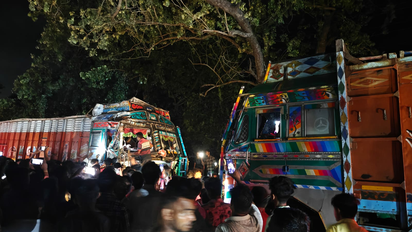 শুক্রবার রাত পৌনে আটটা নাগাদ রামপুরহাটের ভোল্লা এলাকায় ঘটে যায় এক ভয়াবহ সড়ক দুর্ঘটনা। মুখোমুখি সংঘর্ষ হয় দুটি ট্রাকের—একটি যাচ্ছিল নলহাটির দিকে, অন্যটি রামপুরহাটের দিকে। প্রত্যক্ষদর্শীদের মতে, দুটি ট্রাক একে অপরকে পাশ কাটানোর আগেই মুখোমুখি ধাক্কা লাগে। সংঘর্ষ এতটাই তীব্র ছিল যে, দু’টি ট্রাকের সামনের অংশ দুমড়ে-মুচড়ে যায়। গুরুতর আহত হন এক ট্রাকচালক।
