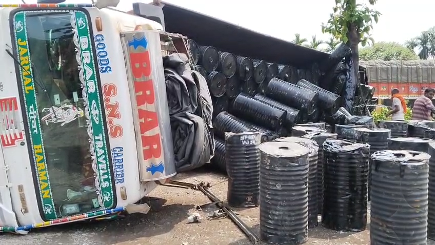 বিটুমিনের ড্রাম বোঝাই গাড়ি উল্টে বিপত্তি ভাঙ্গাপাকড়ি এলাকায়। রাস্তা তৈরির উপকরণ বিটুমিনের ড্রাম নিয়ে গুজরাট থেকে আসামের গৌহাটি যাচ্ছিল ২২চাকার একটি ট্রেলার। ৩১ নং জাতীয় সড়ক ধরে আসামে যাওয়ার পথে বক্সিরহাট থানার ভাঙ্গাপাকড়ি নাকা চেকিং পয়েন্টের সামনে ধর্মকাটায় ঢোকার পথে রাস্তার মাটি ধসে গিয়ে উল্টেযায় বিটুমিন বোঝাই ট্রেলার গাড়িটি।