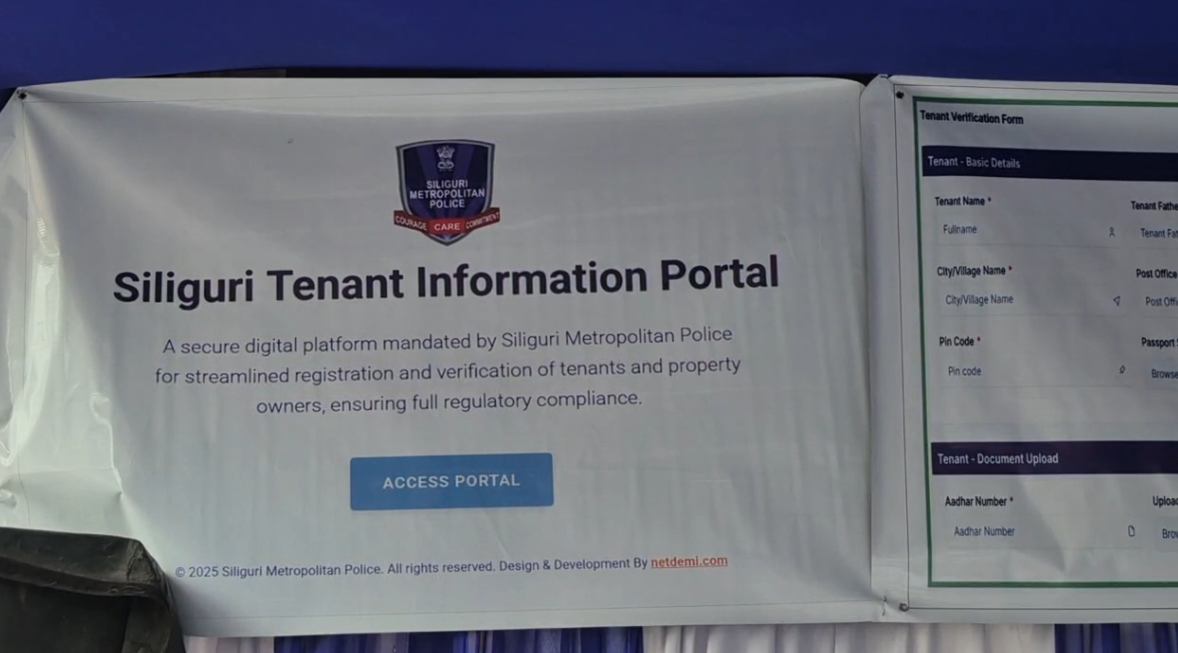 শিলিগুড়ি শহরে আইন-শৃঙ্খলা পরিস্থিতি আরও সুরক্ষিত ও সুসংগঠিত করতে শুরু হলো শিলিগুড়ি টেনেন্ট ইনফরমেশন পোর্টাল। শনিবার আনুষ্ঠানিকভাবে এই পোর্টালের উদ্বোধন করেন শিলিগুড়ি পুলিশ কমিশনার সি সুধারকর। অনুষ্ঠানে উপস্থিত ছিলেন শিলিগুড়ি পুলিশের অন্যান্য উচ্চপদস্থ আধিকারিকরাও।পুলিশ কমিশনার জানান, শহরের ভাড়াটিয়া ও বাড়িওয়ালাদের তথ্য ভান্ডার গড়ে তুলতে এবং অপরাধ দমন কার্য ক্রমে প্রযুক্তি ব্যবহারের লক্ষ্যেই এই পোর্টাল চালু করা হয়েছে। এর মাধ্যমে বাড়িওয়ালা অনলাইনে ভাড়াটিয়ার নাম, ঠিকানা, পরিচয়পত্রের বিবরণ, ভাড়ার মেয়াদ সহ প্রয়োজনীয় তথ্য নথিভুক্ত করতে পারবেন।