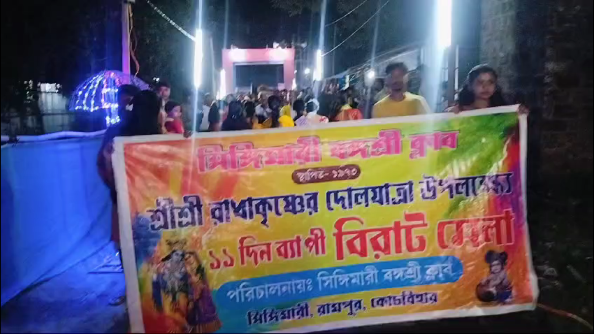 বুধবার সন্ধ্যায় প্রতিবছরের মতোই কোচবিহার জেলার তুফানগঞ্জ ২ নং ব্লকের সিঙ্গিমারী রামপুর বঙ্গশ্রীক্লাব ও লাইব্রেরীর পরিচালনায় বিশাল মেলার আয়োজন।