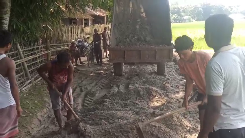 গ্রামের একমাত্র রাস্তা বেহাল, চাঁদা তুলে মেরামতি করলো গ্রামবাসীরা